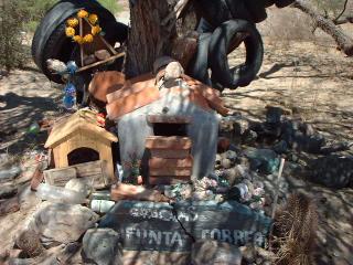 These „holy“ places can be found a lot in Argentina: the people give bottles filled with water and other rubbish in order not to have accidents e.g.