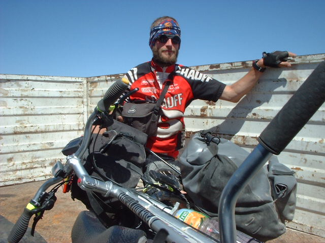Bad luck for us: the landscape is quite boring, we decide to hitchhike.